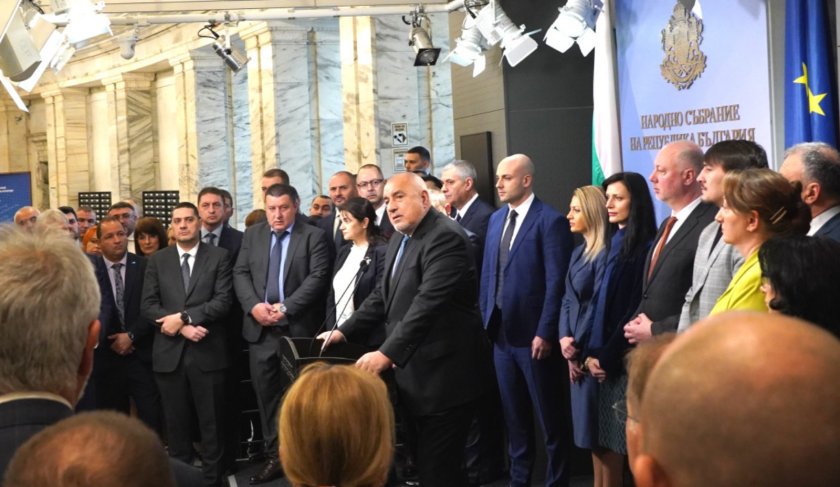 Още преди началото на парламентарния ден Бойко Борисов и Мария Габриел, дружно с цялата група на ГЕРБ - Съюз на демократичните сили застанаха дружно пред медиите.