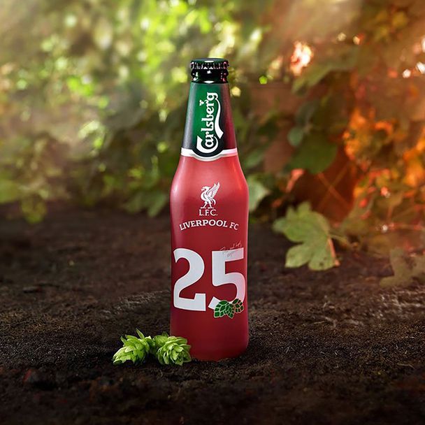 Червен хмел за Коп. Carlsberg чества 25-тата си годишнина, като прави лимитирана серия бира с " червен хмел ", която потопя в фрагменти от мачове на Ливърпул през последните 25 години и мощния тон от трибуните.