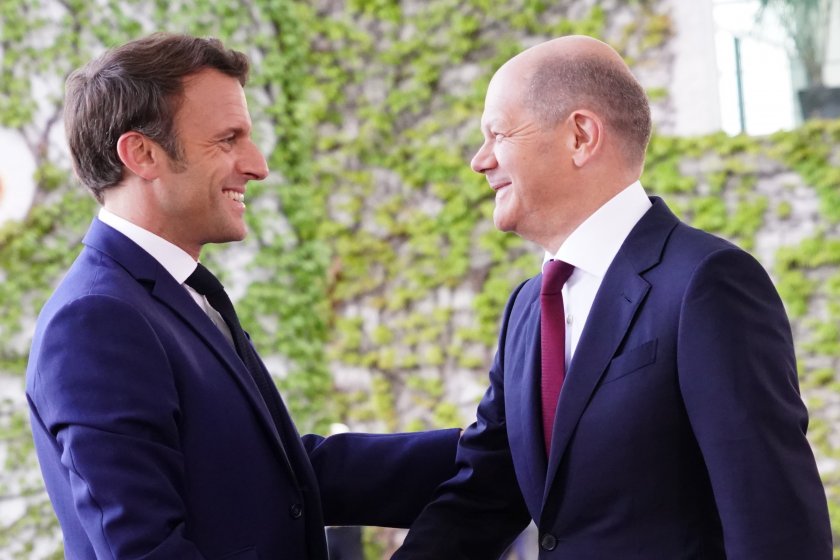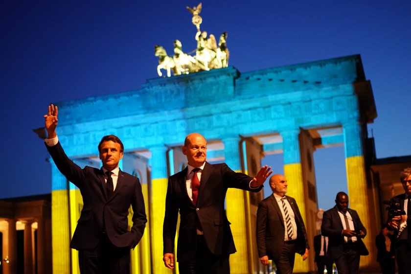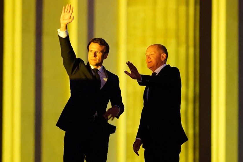 По традиция френският президент отпътува първо за Берлин, където се срещна с немския канцлер Олаф Шолц.