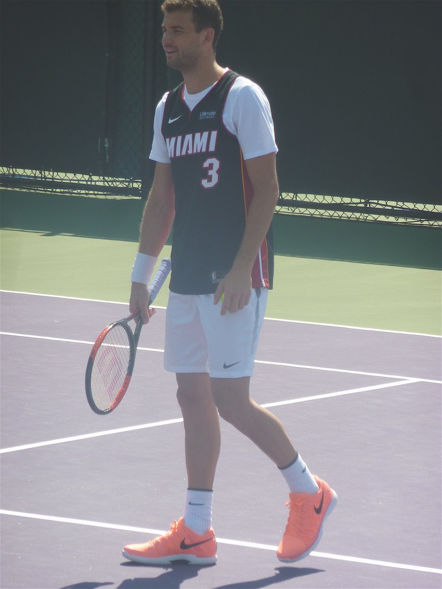 Grigor Dimitrov practicing in a Dwyane Wade jersey.
