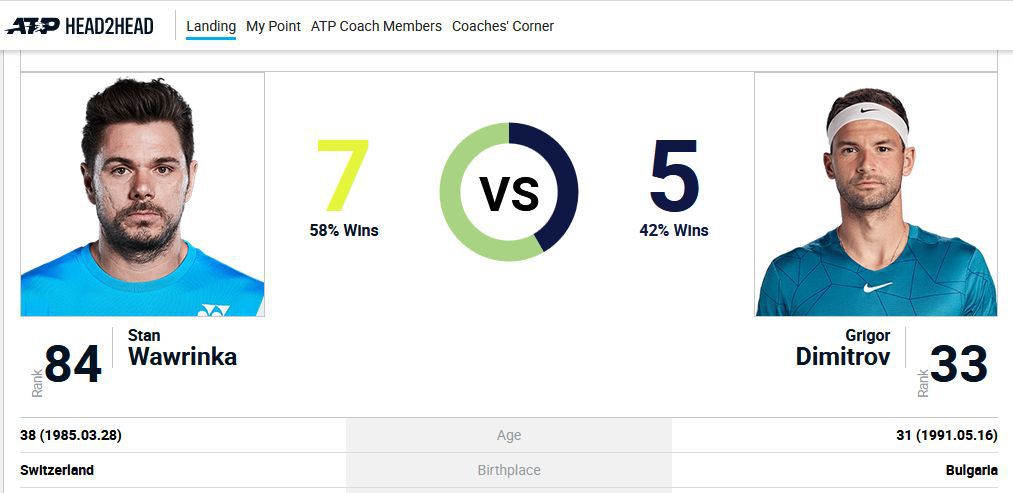 Димитров и Вавринка са играли 12 пъти един против различен, а хасковлията има 5 триумфа и 7 загуби.