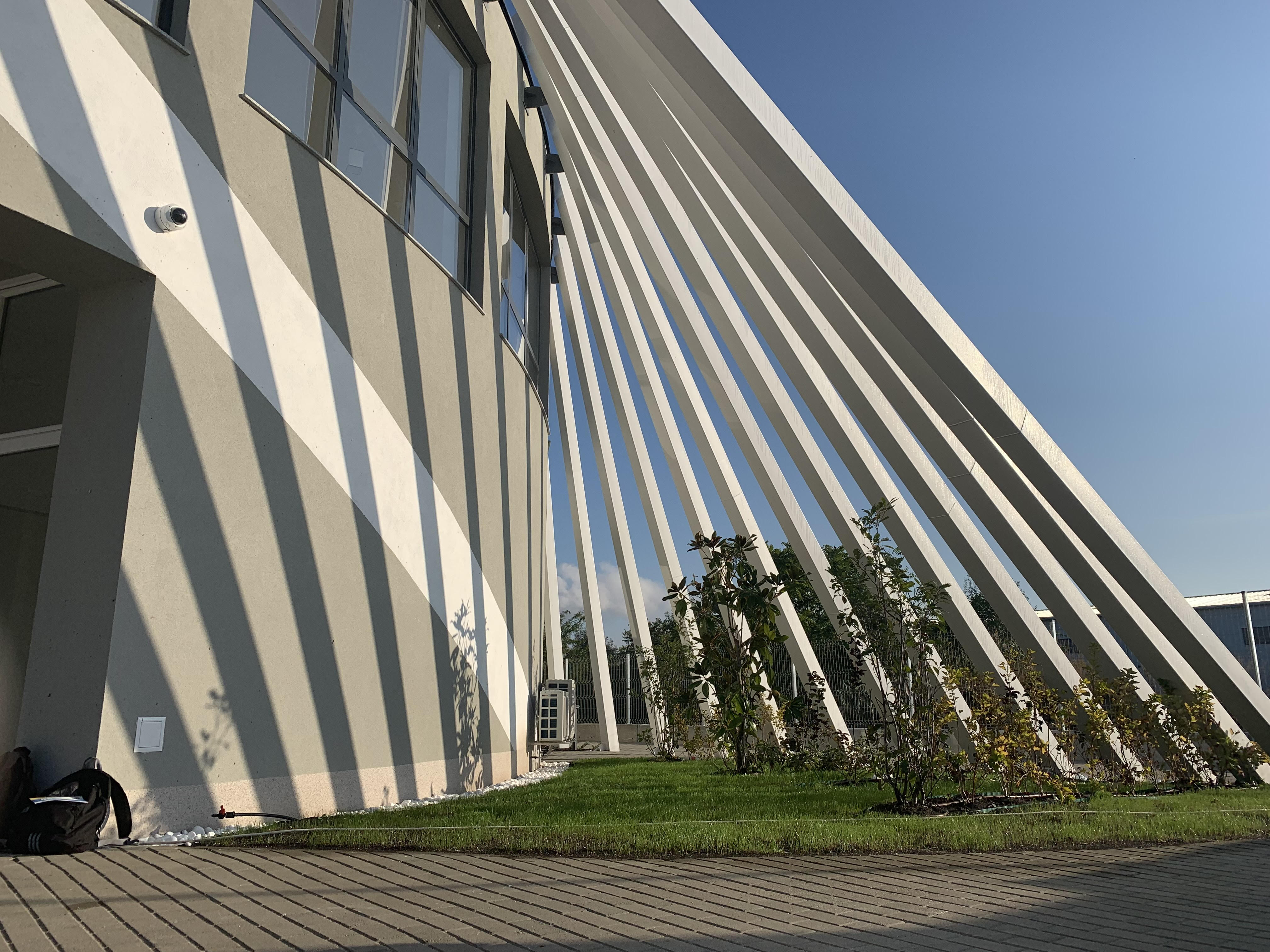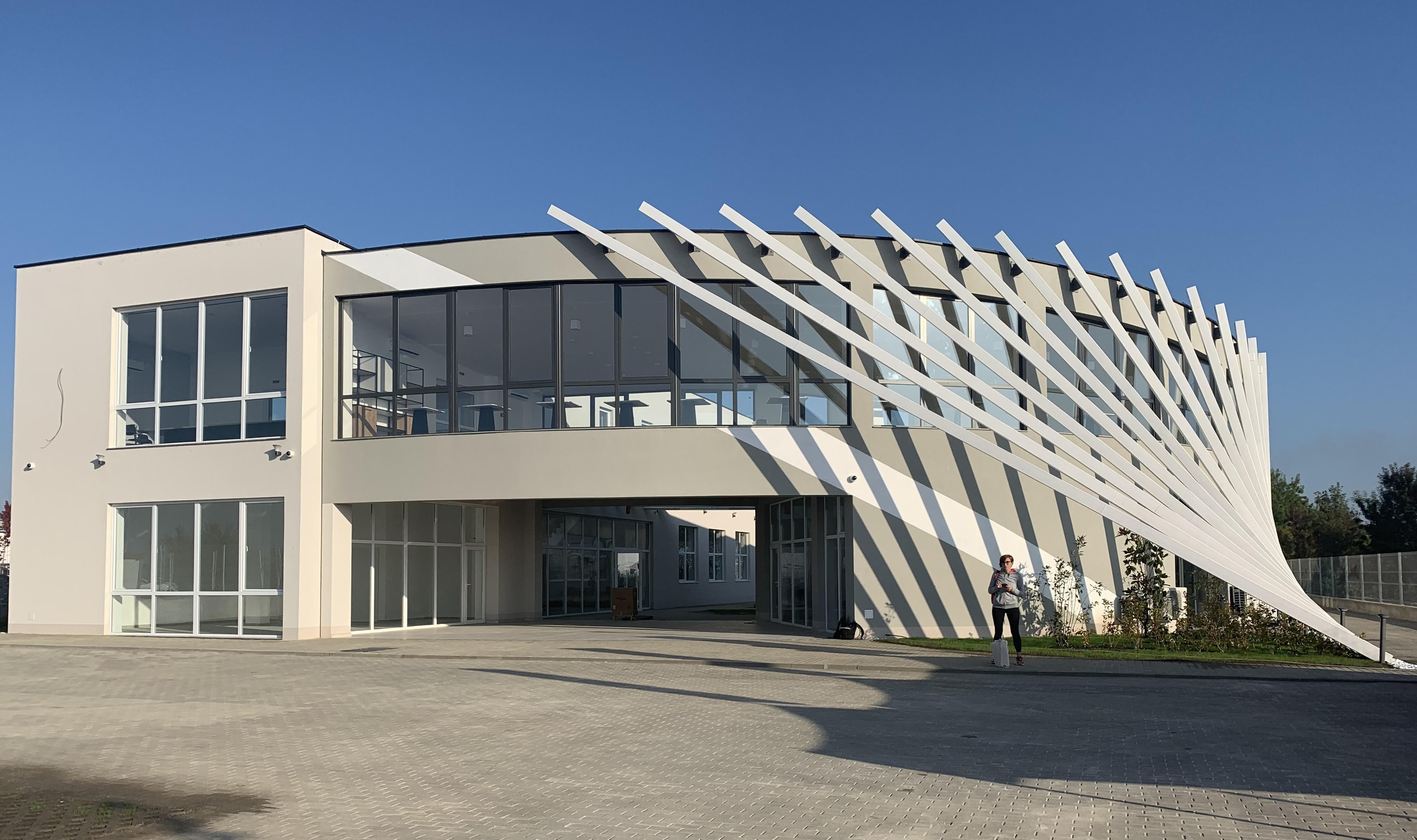 Архитектурата на новата постройка символизира симбиозата сред детайлите въздух, вода и земя. Към фасадата на постройката по автентичен метод е стилизирано лебедово крило