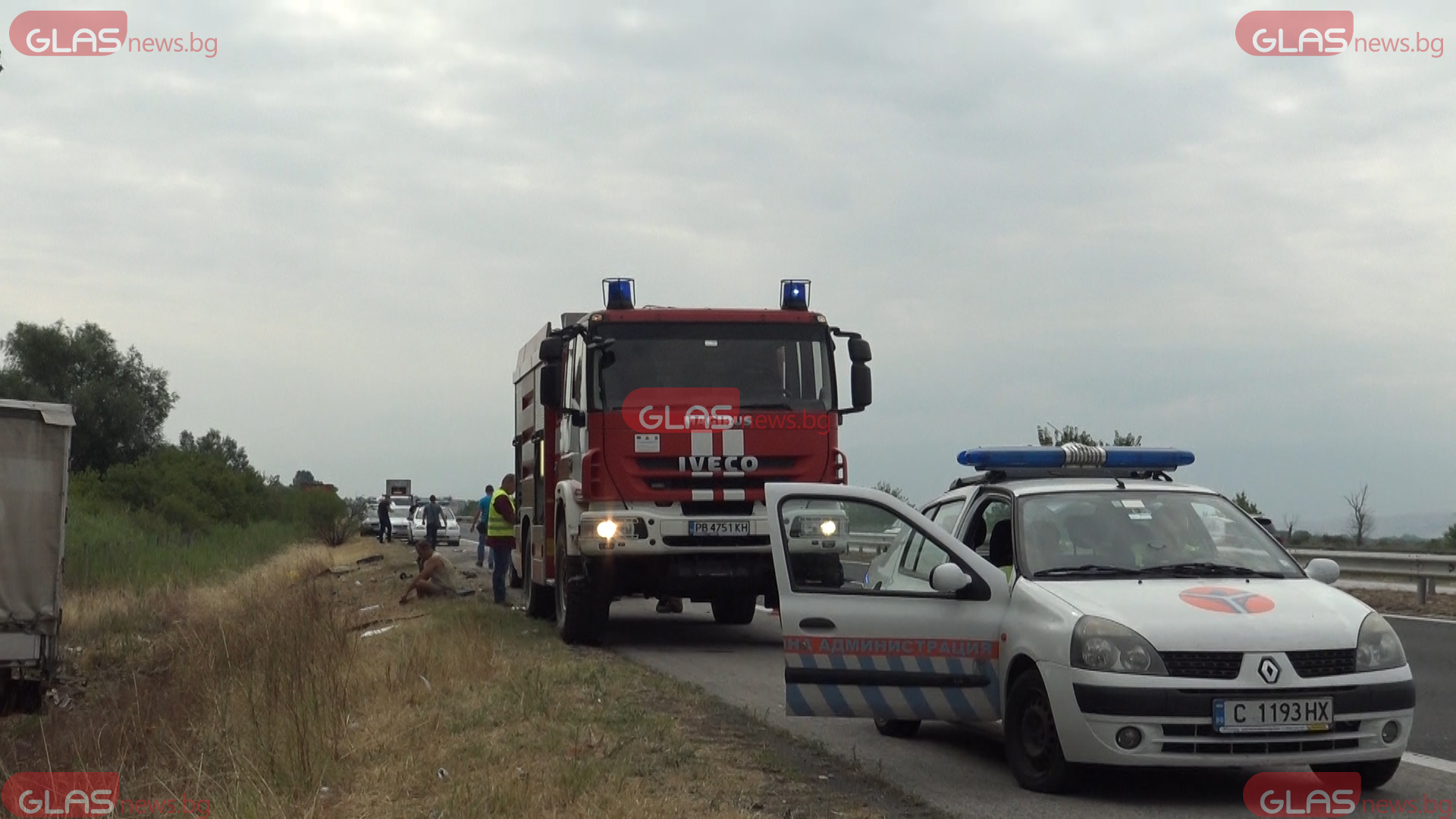 Припомняме, че злополуката стана на 94 километър в посока София. На мястото на случая са изпратени екипи на бранш Пътна полиция и аварийно-спасителен екип на пожарната.