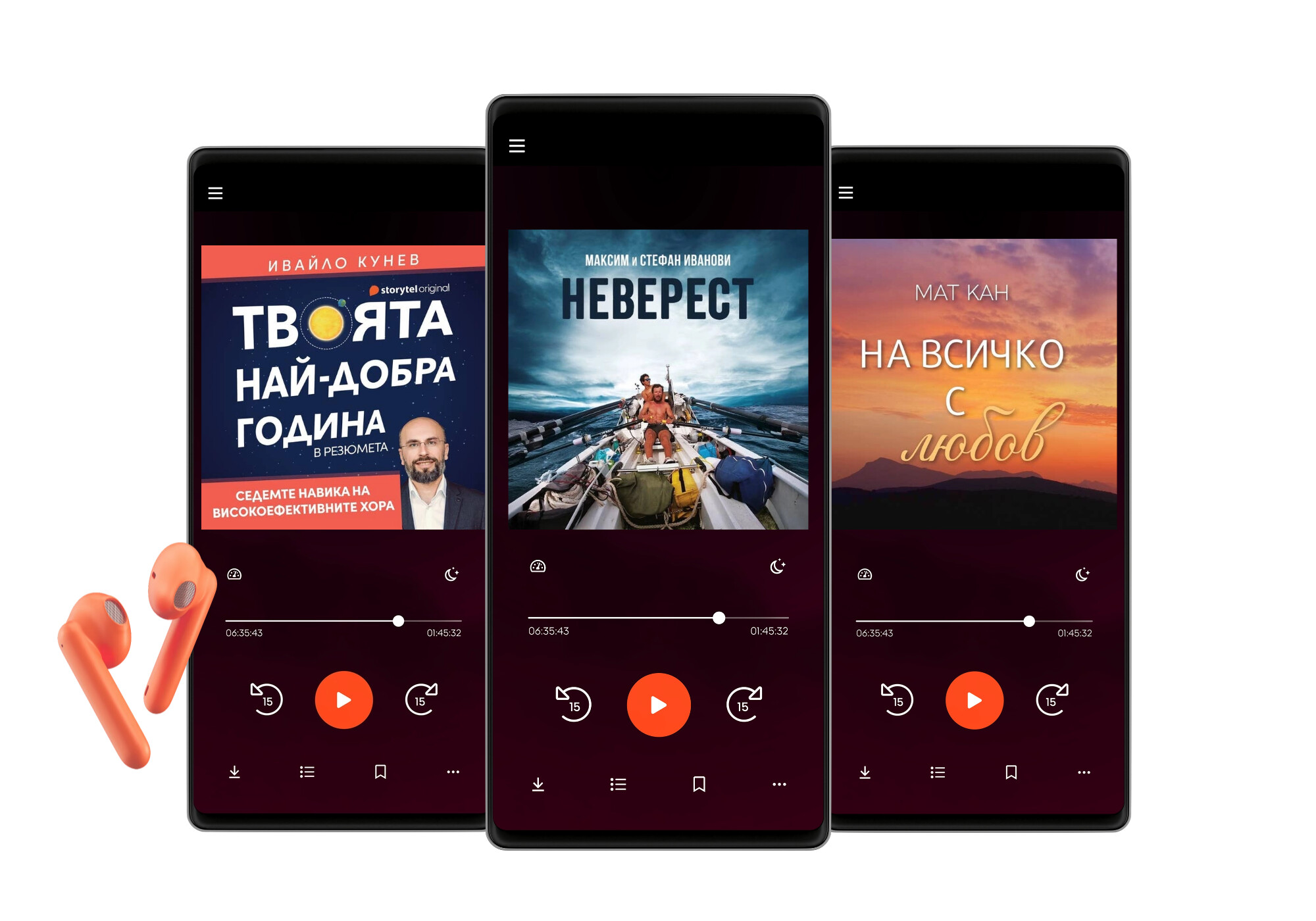 С над 500 000 заглавия, 9000 от които на български език, в последните няколко години Storytel съумя да промени напълно метода, по който прекарваме свободното си време. Oнези “изгубени ” часове, прекарани в пътешестване, очакване или домакинска работа, елементарно се трансформират в персонално време, което ни зарежда с ентусиазъм и мотивация.