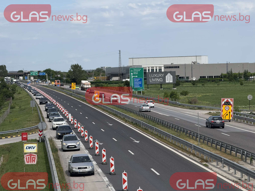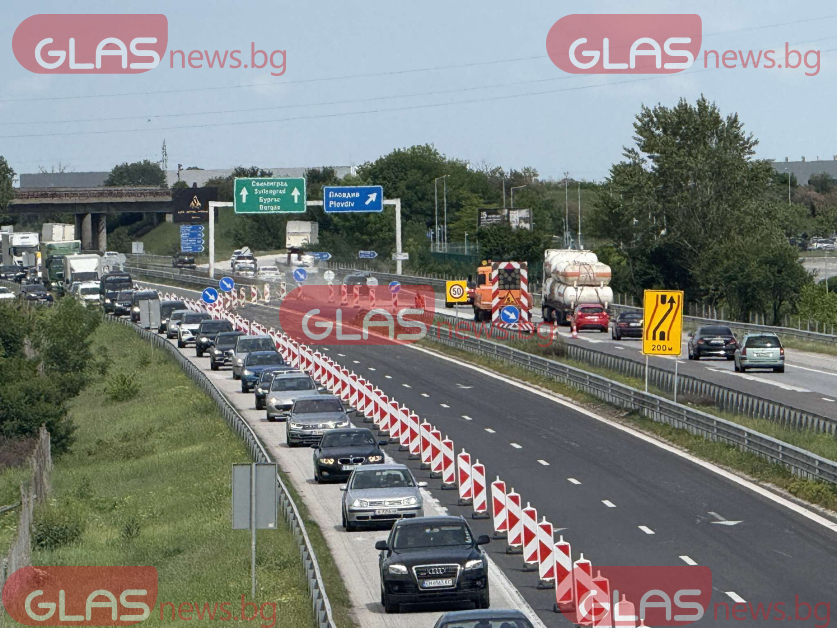 Първите тапи поради ремонта на автомагистрала Тракия край Пловдив започнаха.