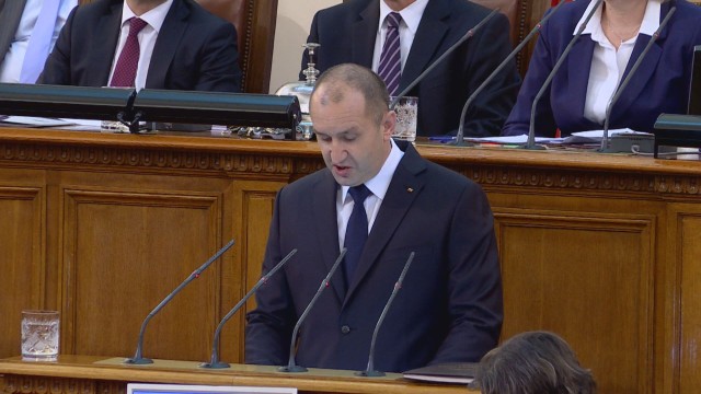 Първата тирада пред Народното събрание в първия мандат на Румен Радев провокира напрежение. Тогава Радев подсети, че предстоят предварителни избори и депутати ГЕРБ, „ Реформаторския блок “ и „ Патриотичния фронт “ напуснаха залата още преди да завърши словото на президента.