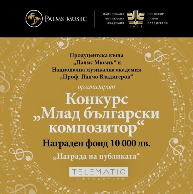 Първият стадий от Конкурса за млад български композитор на продуцентска къща Palms Music и Националната музикална академия „ Проф. Панчо Владигеров “ завърши. Талантливи българи от целия свят изпратиха свои произведения, изявявайки композиторската си заложба.