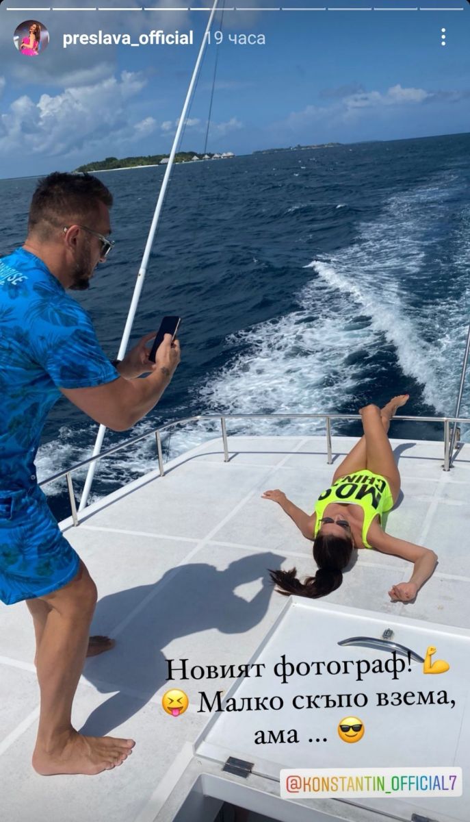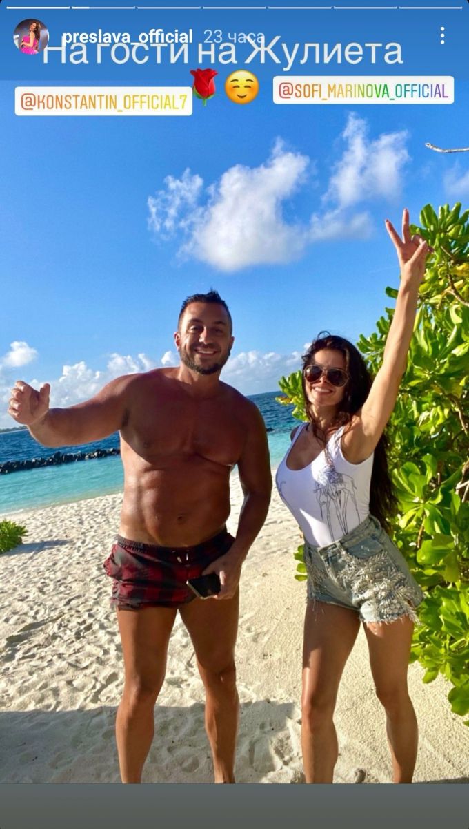 Популярното трио, което бе съпроводено до райското кътче под небето от брачната половинка на Константин, половинката на Преслава и сина на Софи, се насочи към островите в края на предишния месец, посрещайки октомври с песни край масата на една от хотелските стаи, които бяха наели там.