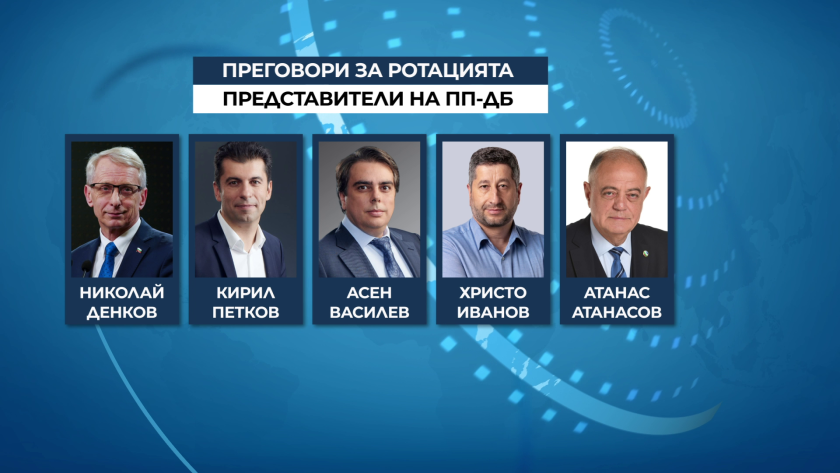 Първият кръг договаряния сред ГЕРБ-СДС и ПП-ДБ по какъв начин да продължи ръководството, в случай че има ротация Денков-Габриел завърши малко след 22.00 часа. От страна на ГЕРБ на масата е поставено съглашение, което да трансформира сглобката в коалиция. От страна на ПП-ДБ е комплициран меморандум с механизъм за назначения в регулаторите.