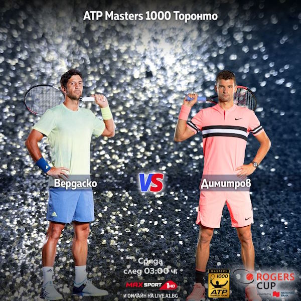 Първият мач на Григор Димитров от ATP Masters 1000 шампионата в Торонто против Фернандо Вердаско ще бъде излъчен директно в ефира на MAX Sport 1, както и като pay-per-view на платформата Live.A1.bg.