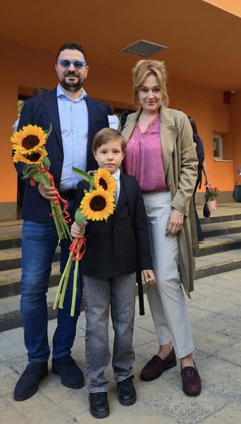 Актрисата Биляна Петринска също претърпя един от най-вълнуващите моменти в живота на всяка майка – тя изпрати своя наследник в първия му образователен ден като първокласник. Облечен стилно в мрачно сако и с убеден взор, първолакът гордо театралничи до своите родители пред входа на учебното заведение. Биляна, както постоянно елегантна и естествена, сияеше от наслада и горделивост, а бащата също споделяше страстта с усмивка и букет в ръка.