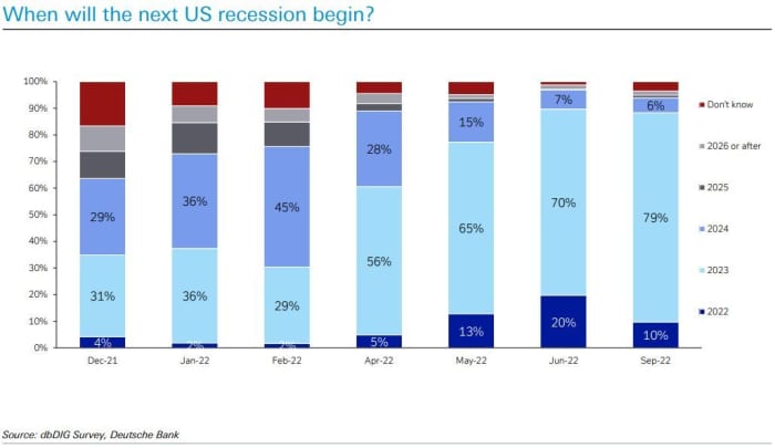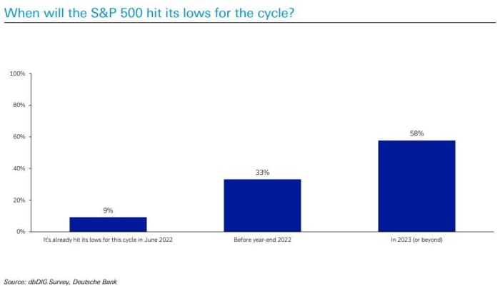 Междувременно по-малко от 10% от интервюираните считат, че фондовият пазар е достигнал дъното, като 58% споделят, че пазарът ще доближи дъното си за този цикъл през 2023 година или по-късно.