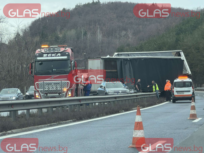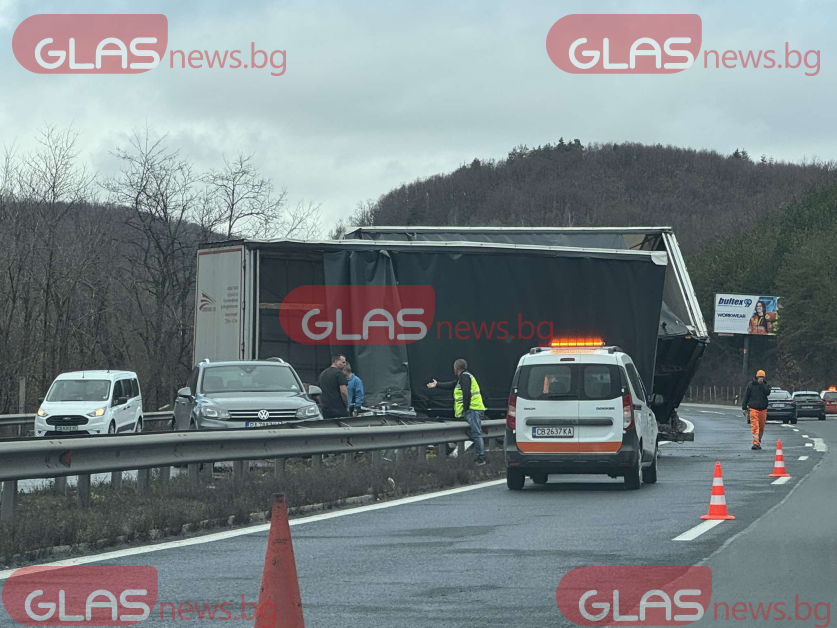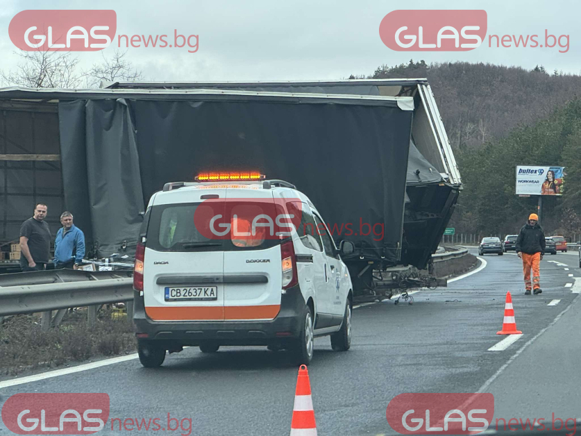 Пътен случай е станал през днешния ден на автомагистрала „ Тракия “. Камион се е обърнал в региона на 54 километър в посока Бургас. Тежкотоварното транспортно средство се е обърнало странично на разграничителната мантинела.