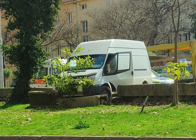 Бус премина тротоар и катастрофира, пристигна линейка СНИМКА