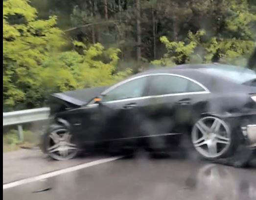 Машината се е блъснала в мантинелата, демонстрират публикувани фрагменти, като има вреди по предницата ѝ, както и по задната ризница.