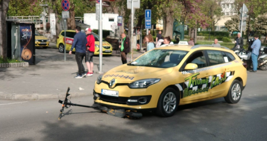 Кошмар в центъра на Варна: Тротинетка е под колелата на такси