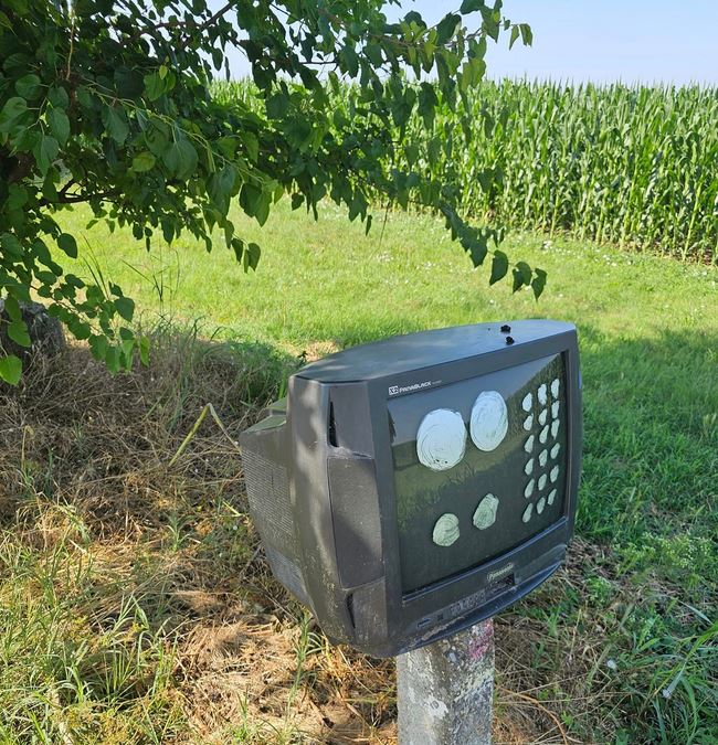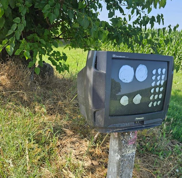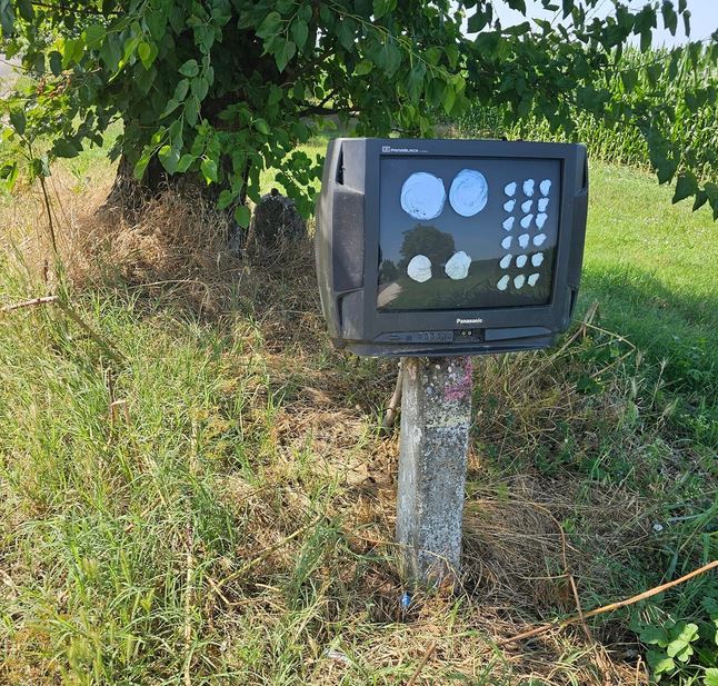 Жители на силистренското село се натъкнали на странна комбинация. Старичък черен тв приемник се мъдрел на крайпътно колче, а по монитора му били изрисувани странни бели точки. Някои жители бързат да споделят, че откриват и известна аналогия с камерите на КАТ - изключително от известно разстояние.