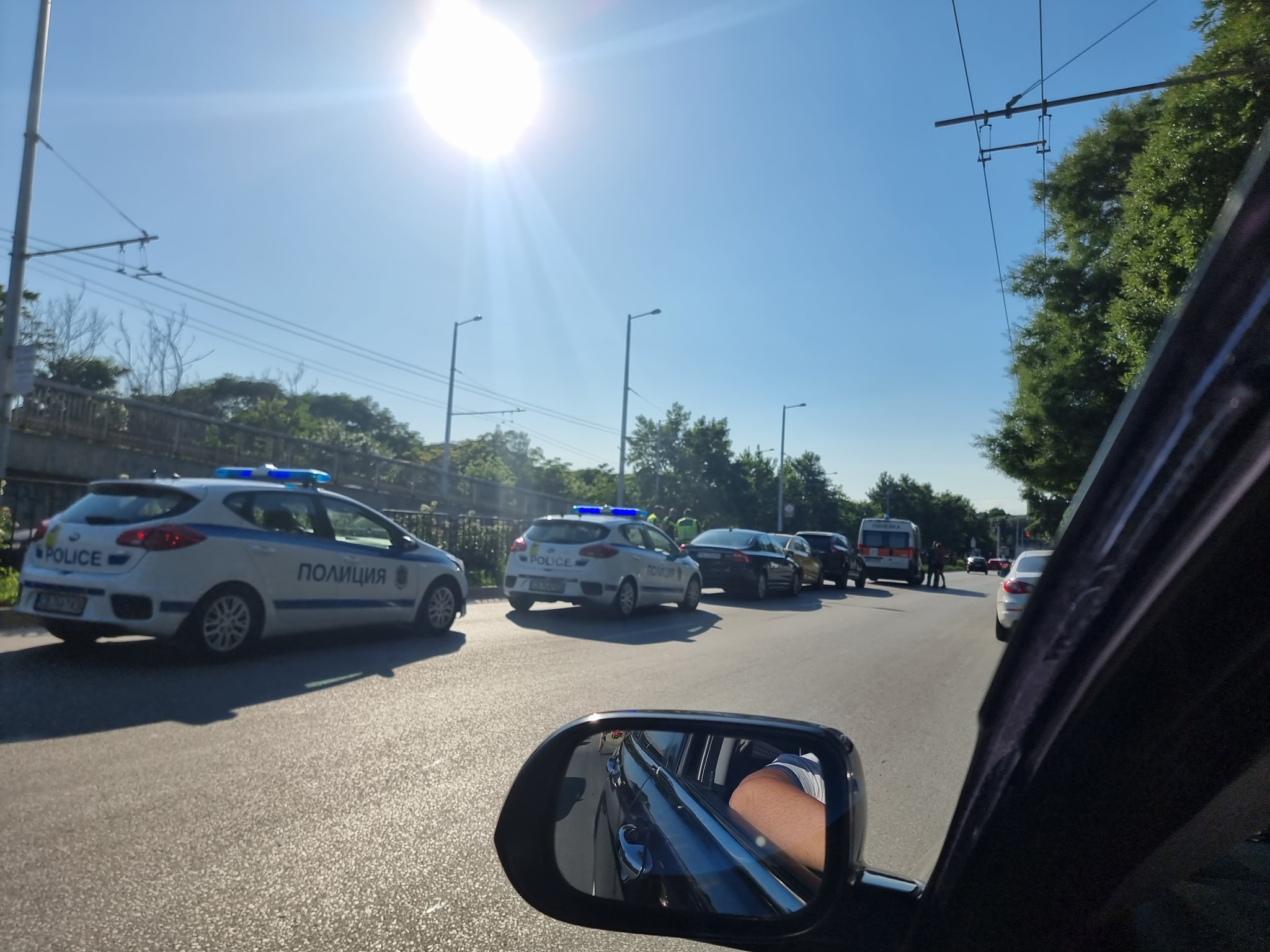 Верижна катастрофа на булевард в Пловдив, линейка и полиция са на място