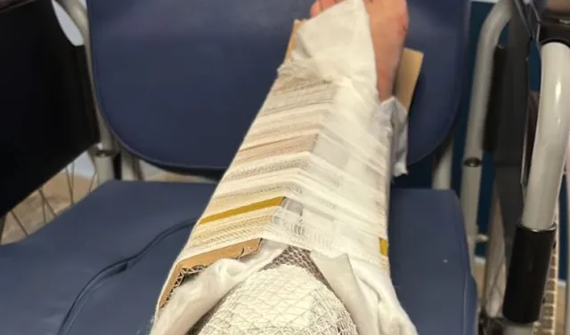 След като глезенът бил краткотрайно нормализиран, мъжът бил изписан със съвет да се прегледа при ортопед в понеделник. Импровизираната превръзка за отпадък обаче не издържала дълго.