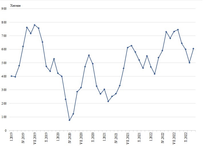 Пътуванията на български жители в чужбина през декември 2022 година са 604,7 хиляди, или с 9,7% над записаните през декември 2021 година.