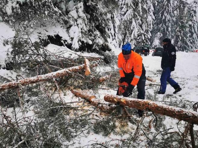 Паркови чиновници са на терен и работят по почистването на дърветата от пътя.