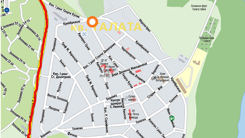 От понеделник – 21 юли, ще бъде затворен за придвижване на коли секторът от ул. „ Кап. I-ви сан Георги Купов “ (разклона за кв. „ Галата “) до ул. „ Боровец “ (разклона за околност „ Боровец “ – кръста). Във връзка с осъществяването на обект „ Основен ремонт общински път VAR 1087/I-9/, кв. " Аспарухово " - кв. " Галата " от отбивката за околност " Карантината " до кръстовището с общински път VAR3089/I-9, Варна - Приселци - в.з. " Боровец " - кв. " Галата " - в.з. " Ракитника " - х. " Черноморец ", гр. Варна " следва полагането на плътния износващ пласт асфалтобетон, създаване на улично осветяване и тротоари в сектора, който е с дължина 760 м.