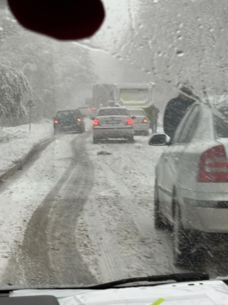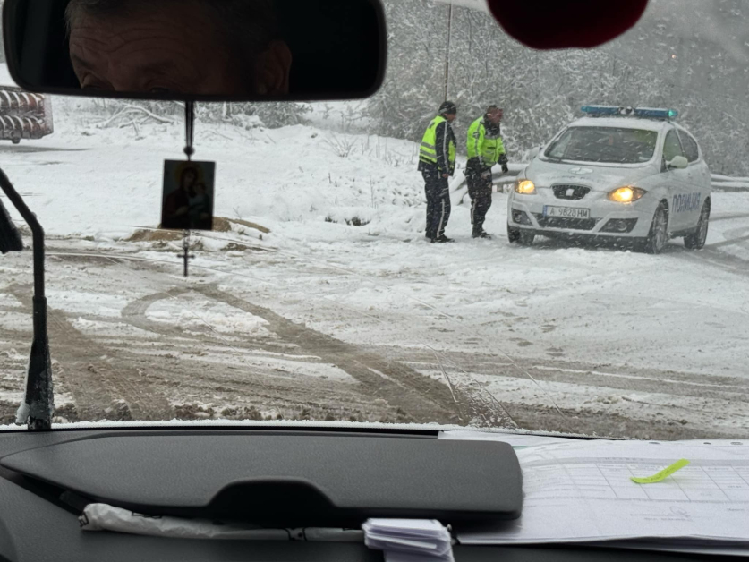 Пътят Слънчев бряг – Обзор е затворен. Автомобили закъсали, тирове блокирали придвижването, полиция контролира трафика.