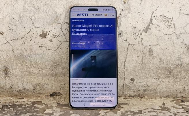 За да влезем в магическия свят на Magic6 Pro, би трябвало да използваме неговия екран. Той е 6,8-инчов, с 453ppi и динамично освежаване на картината от 1Hz до 120Hz. Освен това реализира 1600 нита пикова бляскавост. Поддържа и Dolby Vision и HDR Vivid. Казано на естествен език, екранът наподобява добре даже и на ярка слънчева светлина.