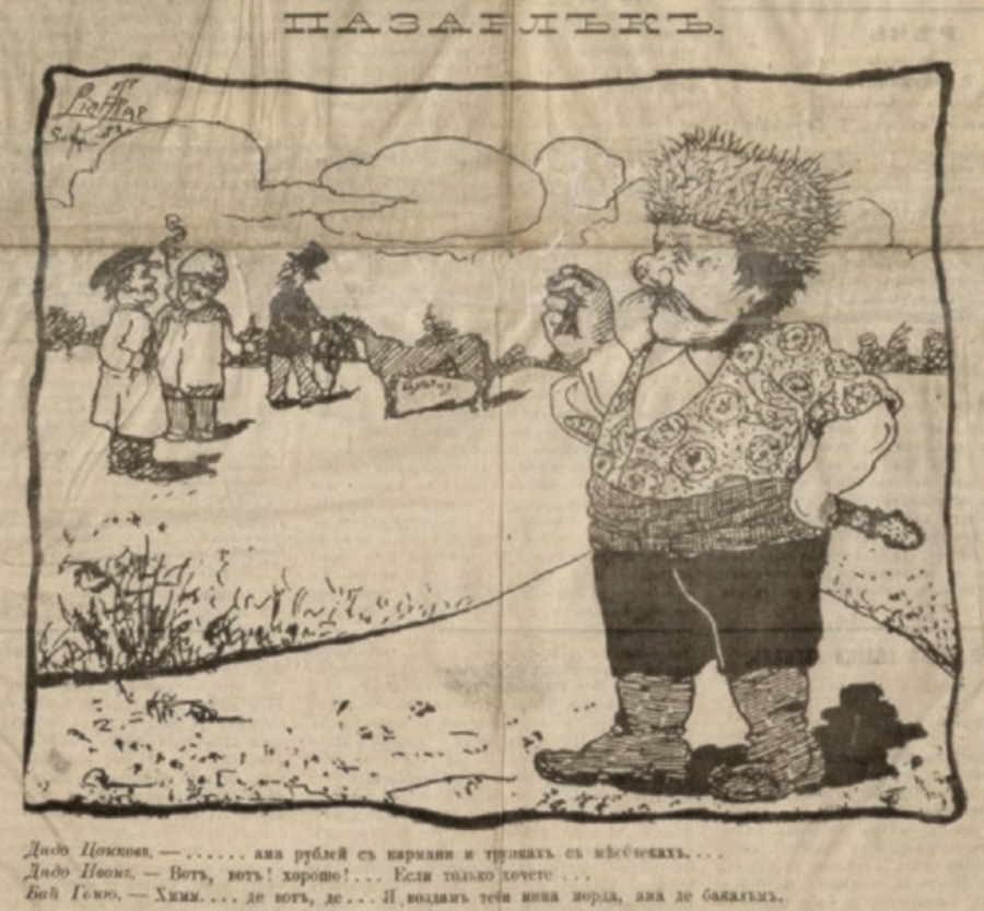 * Карикатурата „ Пазарлък ”, евентуално се отнася за налозите и таксите, които руснаците са събирали из Княжество България, и за угодниченето на русофила Цанков. Публикувана на 3 юни 1902 година във в. „ Жило ”. След гибелта на Цанков, Марко Балабанов споделя „ пред журналиста Петър Карчев, че Алеко-Константиновият Бай Ганю е точно Драган Цанков ”, който съгласно тогавашните виенски вестници е „ индивидът с безпримерно лицемерие ” -