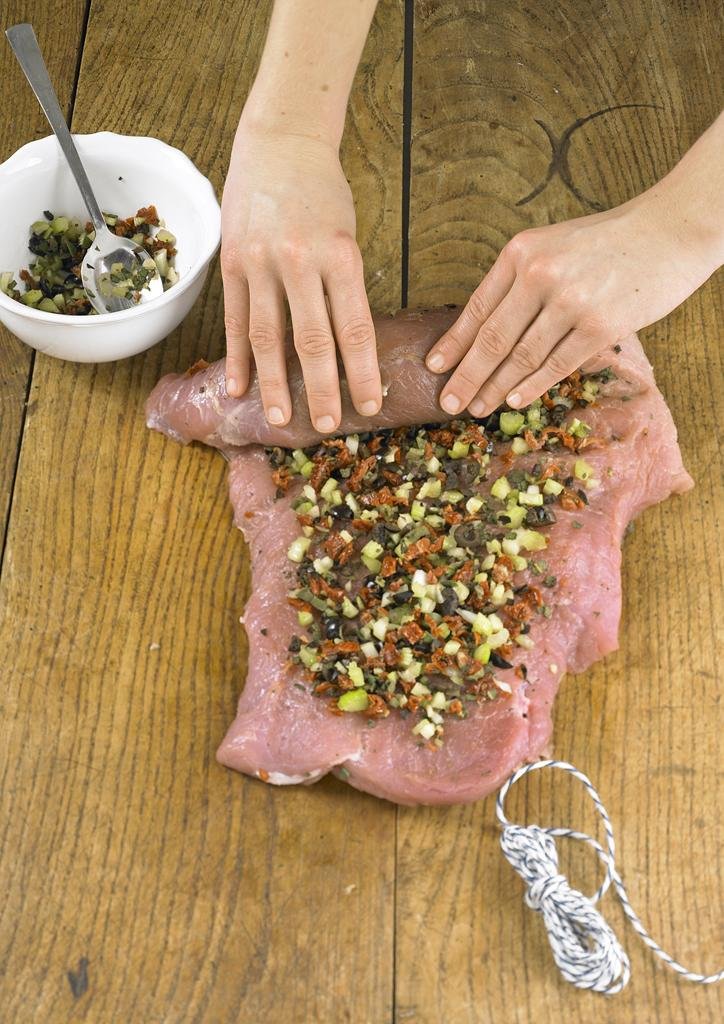 Предлагаме малко по малко средиземноморска рецепта за навито свинско с извънредно ароматна и вкусна плънка.