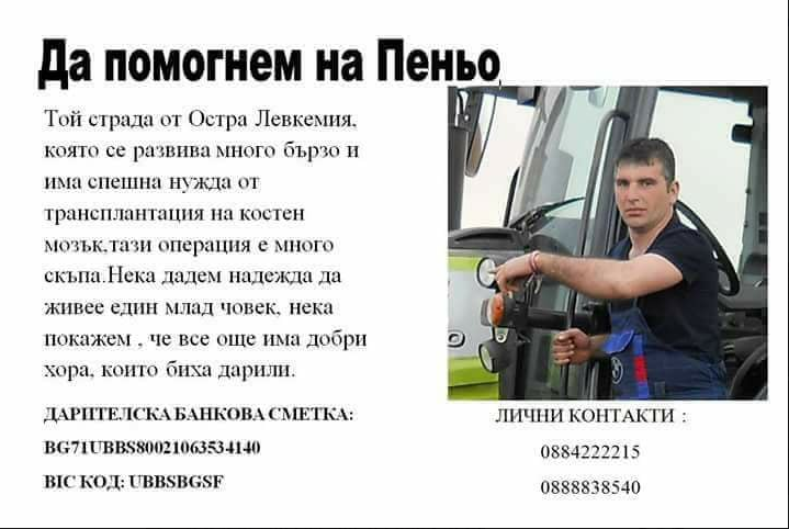 Пеньо Пенев е на 38 години от Горна Оряховица и страда от остра левкемия. Баща е на 14-годишно момче, което тежко приема диагнозата на татко си.