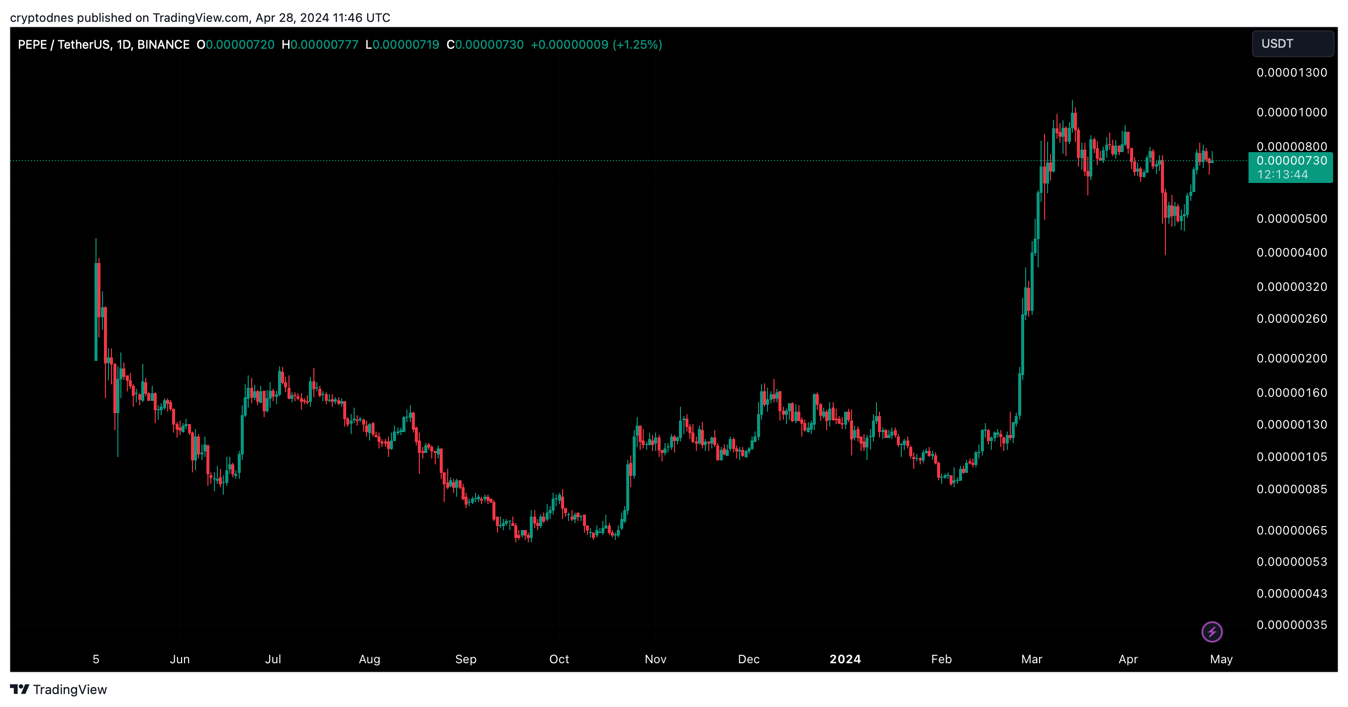 Pepe Coin (PEPE), известна криптовалута, въодушевена от меме, неотдавна притегли доста внимание от страна на търговците и вложителите на международния крипто пазар заради забележителния растеж на цената й през последните дни.