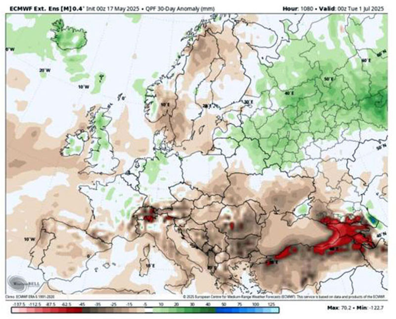 Валежите ще са под нормата за Югоизточна Европа, демонстрират дълготрайните прогнози посредством метеорологичния модел ECMWF. Летният интервал с огромна степен на възможност ще изсъхнал по нашите географски ширини.