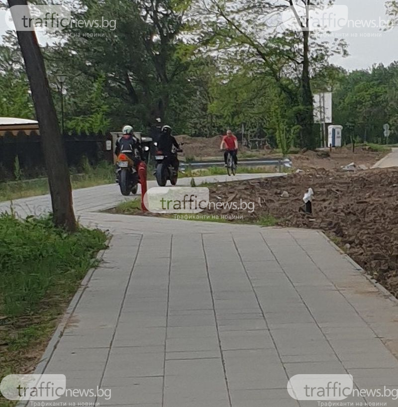 Пешеходна алея в Пловдив е превърната в писта за мотористи. Те се разминават с пешеходци и велосипедисти и по знамение към момента не е станал случай, алармира четец на TrafficNews .