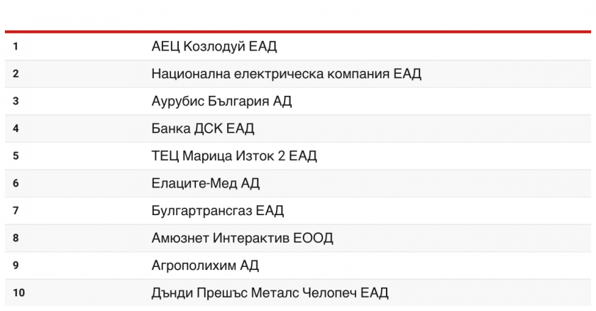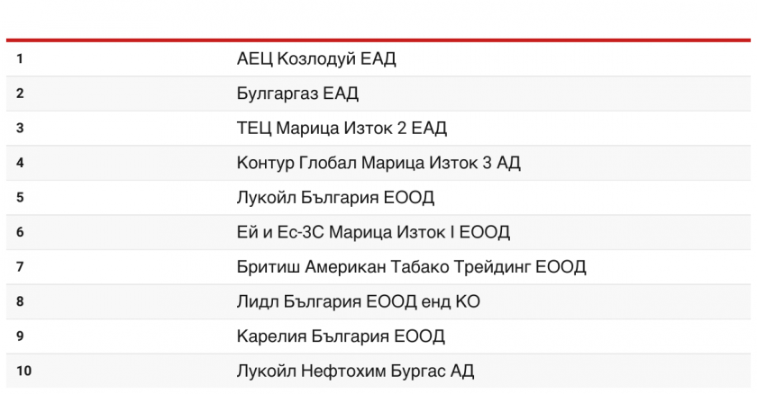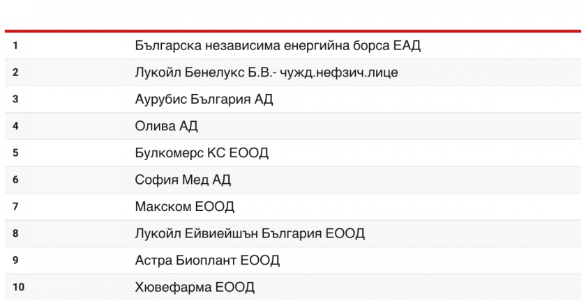 Според тях десетте най-големи данъкоплатци за 2022 година на база импортиран налог добавена стойност (ДДС) са:
