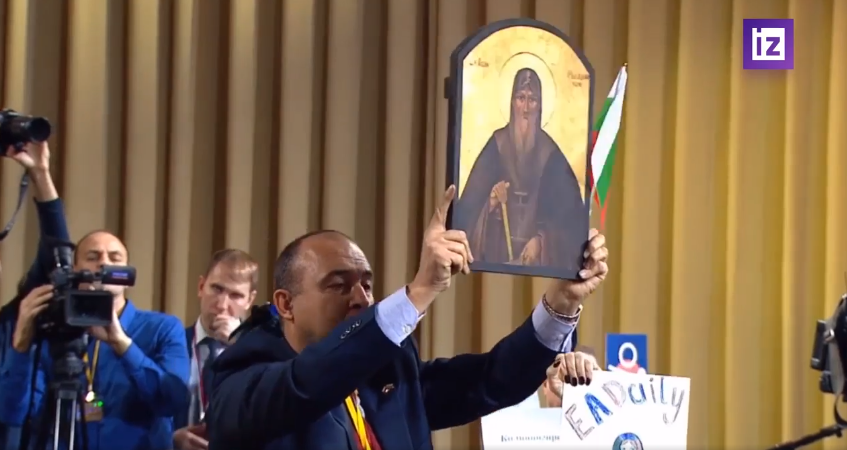 Мъжът се показва като " иподякон " (църковен асистент, който не е свещеник), само че връзката му с православната черква не е повода, заради която е излязъл на площада. А сцената на " Дондуков " 2 не е първата му провокация против " Продължаваме промяната ".