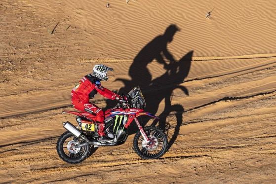 В класа на мотоциклетите, интригата към момента е по-голяма в сравнение с при колите, защото всеки ден има нов етапен победител и разликите в топ 10 не са съдбовно огромни. Етапът бе с много комплицирана навигация и най-добре с нея се оправи Адриан Ван Беверен. Пилотът на Honda донесе етапна победа #100 за японската марка в историята на ралито, като съумя да измъкне нищожните 13 секунди пред съотборника си Хосе Флоримо. Трети за деня се класира Тоби Прайс с КТМ.