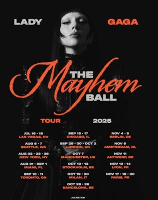 Обиколката на изпълнителката, озаглавена The Mayhem Ball, е в поддръжка на новия й албум Mayhem, излязъл по-рано този месец.