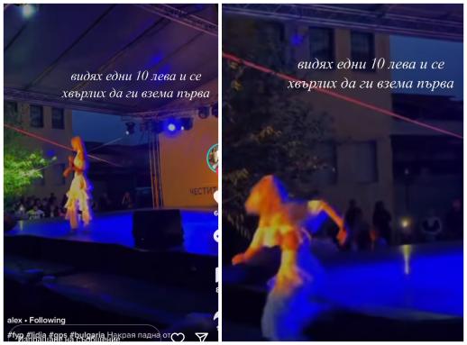 Певицата Лидия падна от сцената по време на присъединяване. Самата тя не се смущава от сходни случки, а за случая излиза наяве от нейния Инстаграм профил. Дори сама себе си осмива, написвайки към видеото " видях едни 10 лв. и се хвърлих да ги взема първа ".