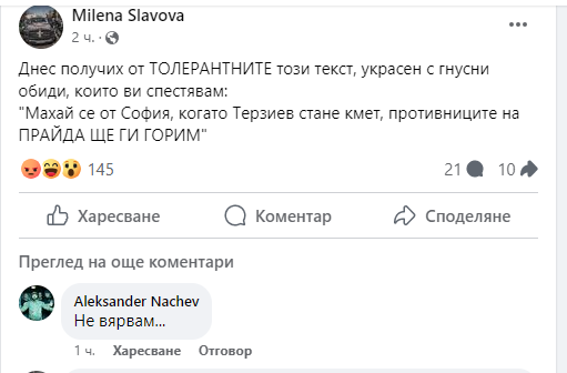" Махай се от София, когато Терзиев стане кмет, съперниците на ПРАЙДА ЩЕ ГИ ГОРИМ ".