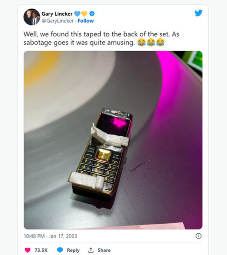 По горещи следи е открита повода за случая. В акаунта си Линекер разгласява фотография на телефона, който бил залепен на гърба на тв приемника. Той изясни, че това е " бойкот " и че случилото се " е много смешно ".