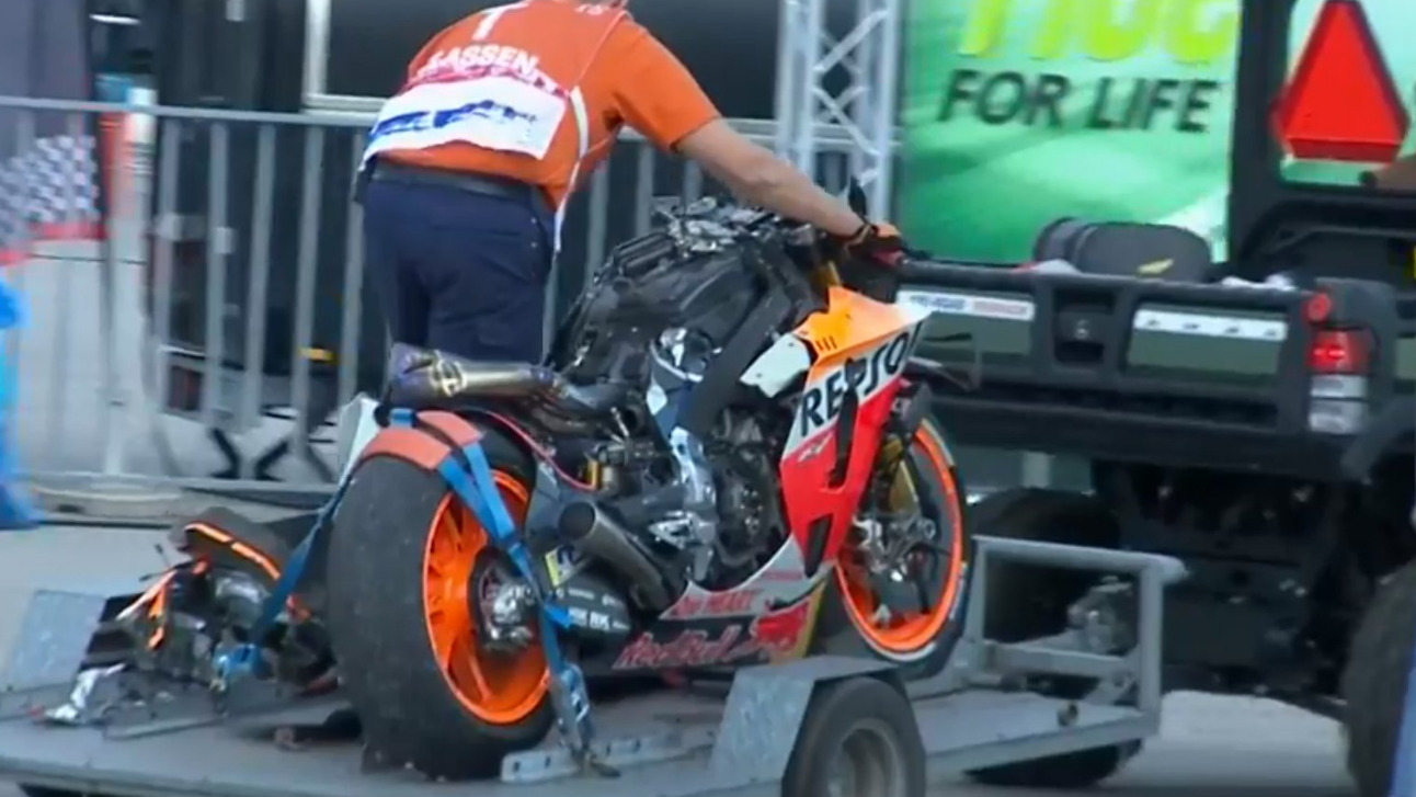 ¡La imagen es tremenda! Así quedó la moto de @lorenzo99 tras su caída #DutchGP #MotoGP pic.twitter.com/U2pIF91lzv