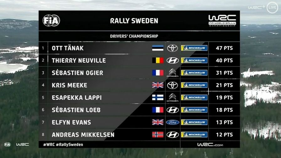3 @ThierryNeuville +56.7s#WRC #Rallysweden pic.twitter.com/OSEj0cUvMn