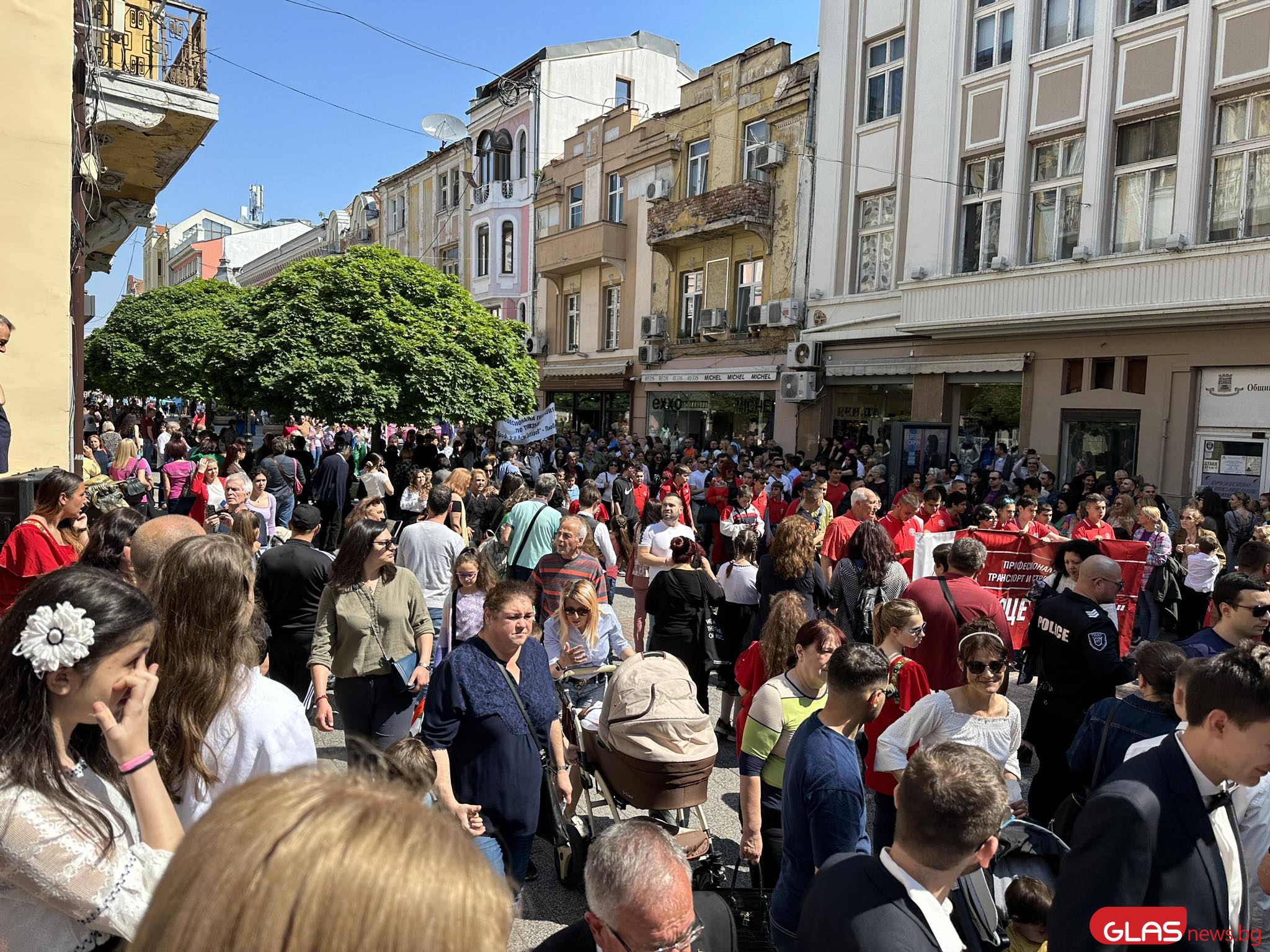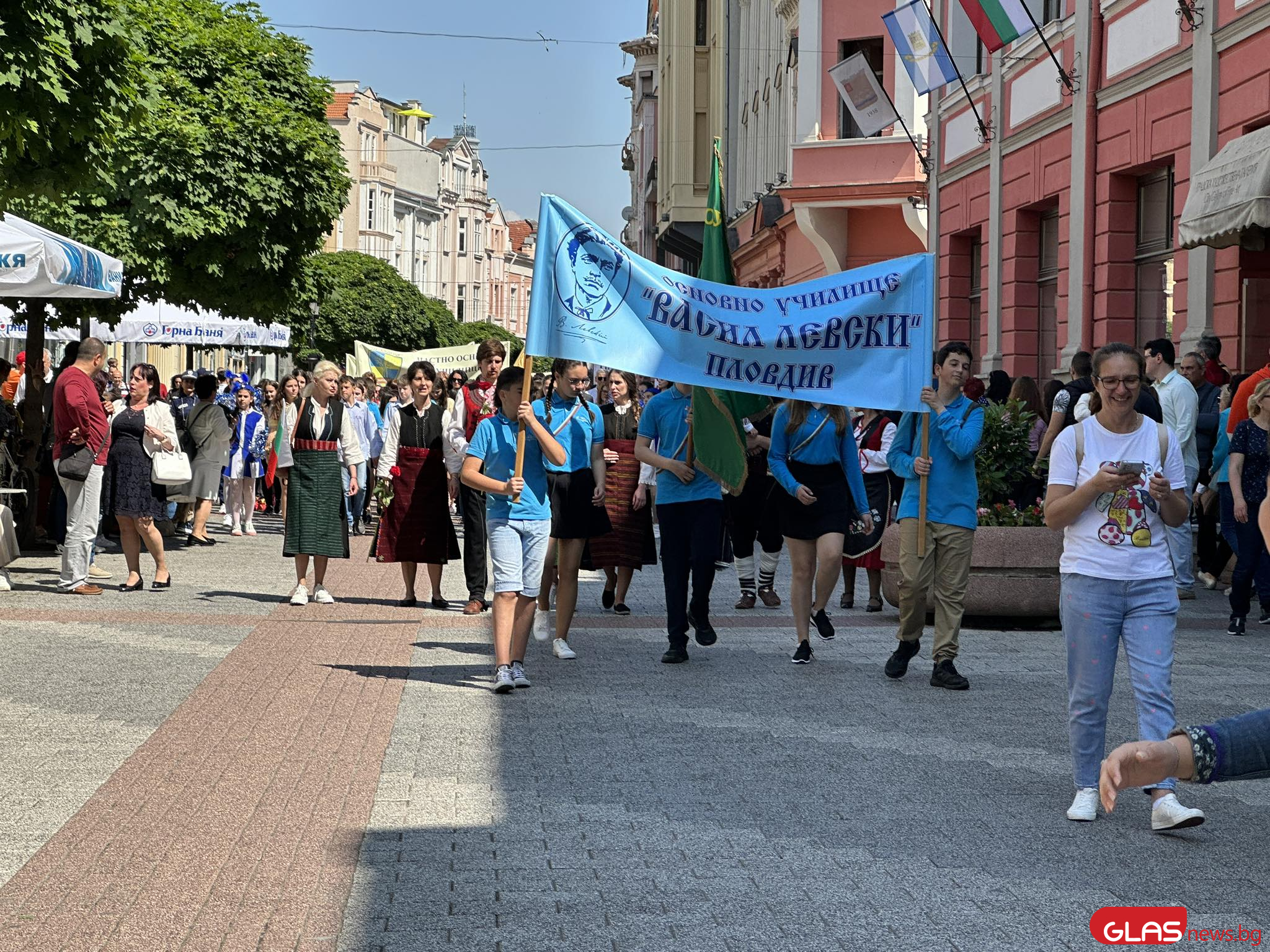 След поднасянето на венци и цветя пред паметника, внушителното шествие потегли към основната на Пловдив и към него на няколко лъча се присъединяваха възпитаници от пловдивските учебни заведения и жители, които желаеха да отбележат празника уместно.