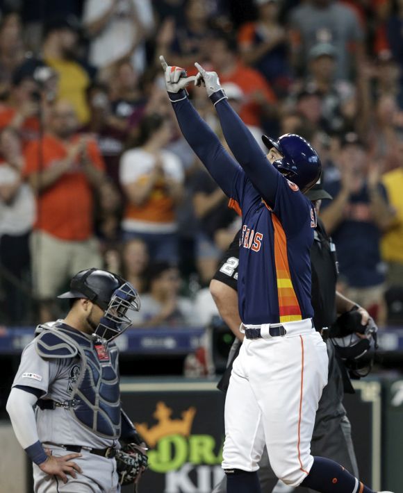 Във въпросната офанзива в 3-тия домакините означиха 9 точки, откакто удариха общо шест двойни шлагера. Два от тях бяха дело на младока Йордан Алварес, трансформирал се в първия състезател на Хюстън с два дабъла в един ининг. 22-годишният новобранец от Куба приключи мача 4 от 6 с три двойни шлагера и 6 RBI.