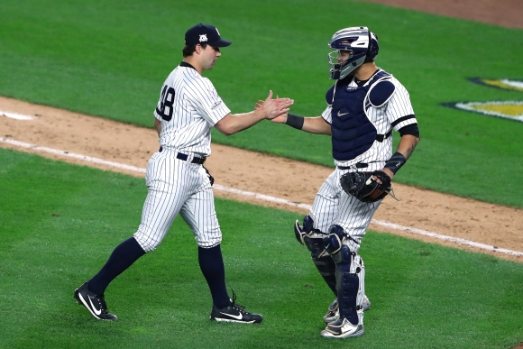 Питчерът на Ню Йорк Янкис Си Си Сабатия завоюва първи мач в плейофите на МЛБ след 5-годишна пауза. Грамадният левичар създаде 6 ининга за домакинската победа с 8:1 против Хюстън Астрос в третия дуел от финала на Американската лига. Първият триумф на " янките " в серията до 4 победи щеше да е шътаут, в случай че гостите не се бяха разписали почетно при 1 навън в последния ининг.