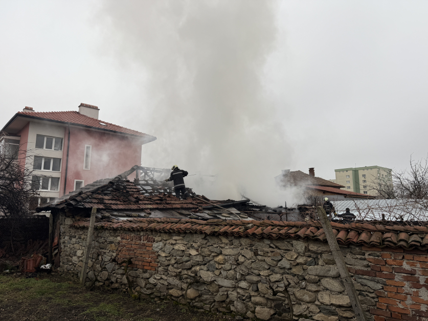 Пожар избухна в пристройка към къща в Карлово ВИДЕО