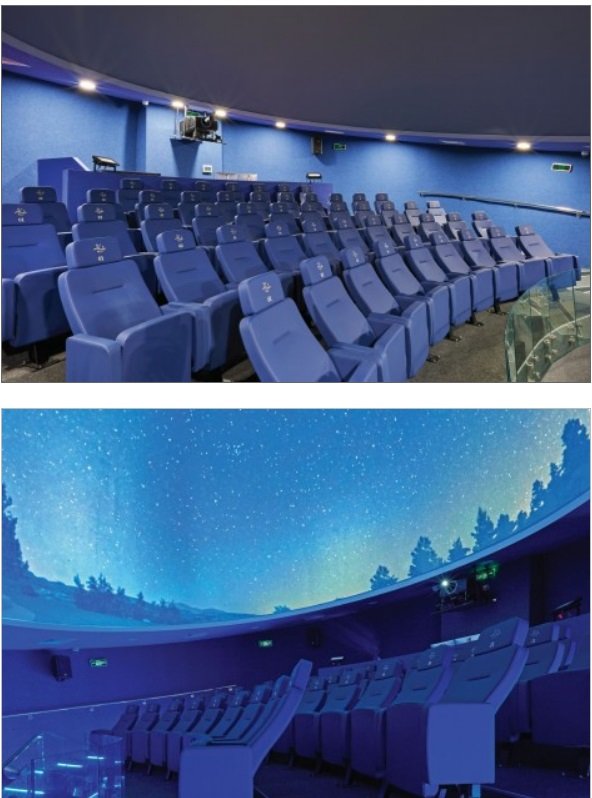 Зрителната зала за 50 места е систематизирана в 5 реда, проведени радиално към центъра за най-благоприятен зрителен ъгъл към небесната хемисфера.