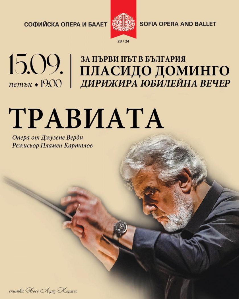 Пласидо Доминго за първи път ще дирижира в България. На 15 септември световноизвестният актьор застава на пулта, с цел да открие новия сезон 23/24 на Софийската опера и балет със театър на „ Травиата “ от Джузепе Верди.