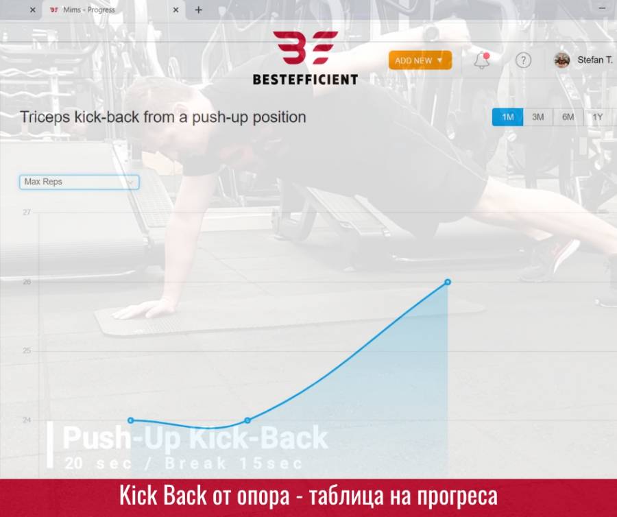 Разгъване за трицепс от опора във висок планк – напредък за 3 седмици